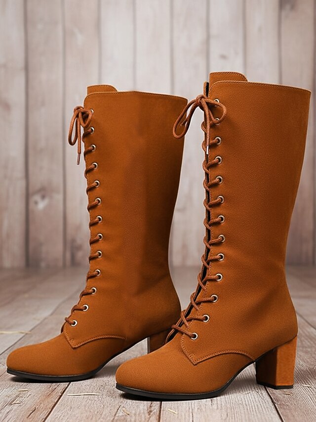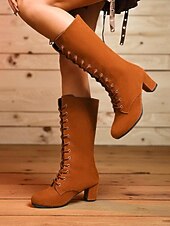 HOT ! Women's Brown Lace-Up Mid-Calf Boots, Retro Edwardian Victorian Style Chunky Heel Boots for Cosplay, Vintage Outfits and Autumn Fashion