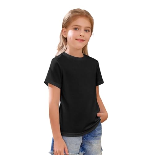 Girls Short Sleeve Shirts Summer Casual Solid Basic Tees Tops Funny Kids Toddler Crew Neck Loose Fit Blouse Clothes 4