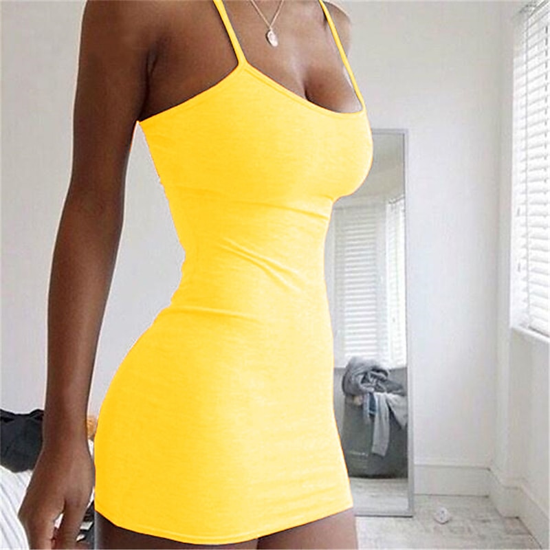 More information about Women's Casual Dress Sheath Dress Sundress Mini Dress Light Pink Black White Sleeveless Pure Color Cold Shoulder Spring Summer Spaghetti Strap Basic Daily Vacation Weekend Slim 2023 S M L XL XXL 3XL