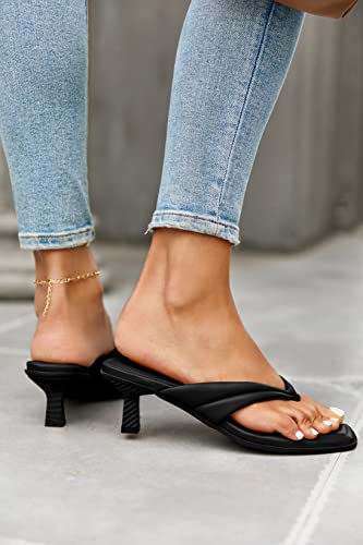 Womens Kitten Heel Thong Sandals Flip Flops Slip On Square Open Toe Slippers Low Stacked Heeled Mules 6