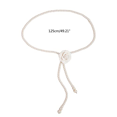 Flower Waist Chains Women Camellia Waist Belt For Dress Pearl Waist Chain Belt Belly Chain For Jeans Sash Belt, Approx.125cm/49.21in, Black 4