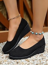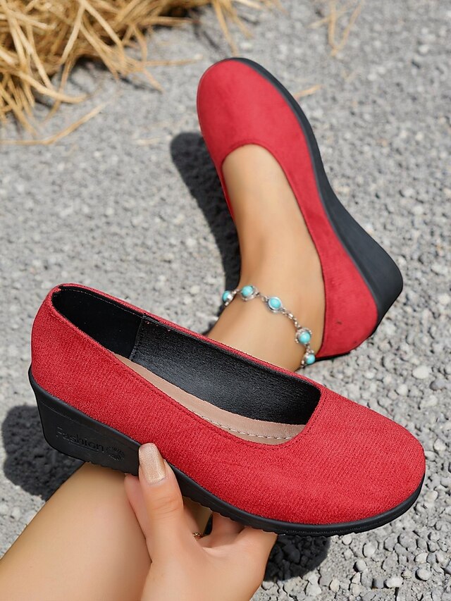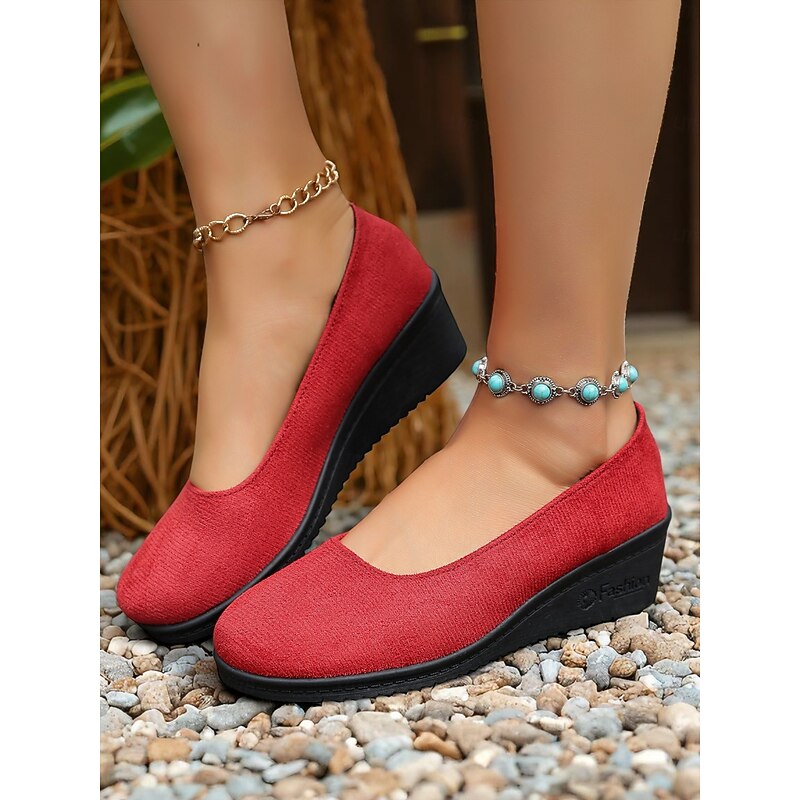 HOT ! Women's Red Low Wedge Slip-On Shoes – Lightweight Comfort Shoes for Patio Parties, Garden Gatherings and Everyday Style