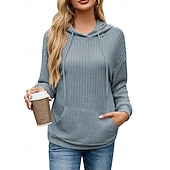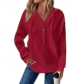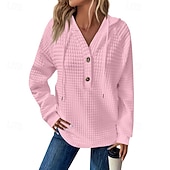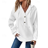 More information about Women's Texture Sweatshirt Waffle Sweatshirt Pullover Hoodie Sweatshirt Plain Streetwear Casual Long Sleeve Hooded Regular Tops Street Holiday Going out Buttons Black White Pink Wine Fall Winter