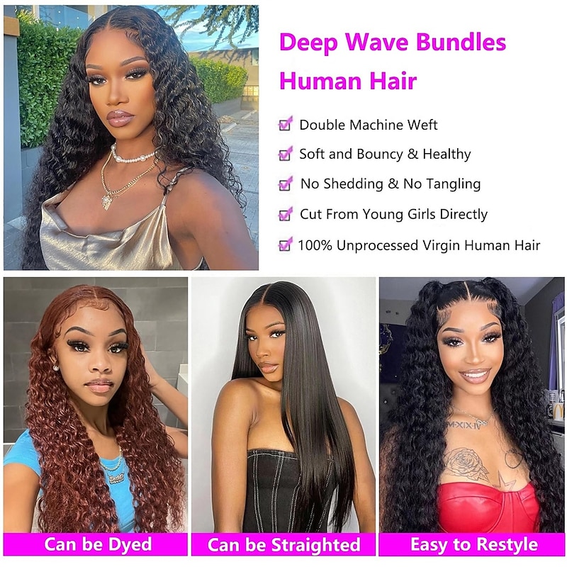 $131.99 - Deep Wave Bundles Human Hair 3 Bundles 16 18 20 Inch 10A Brazilian 100% Unprocessed Virgin Human Hair Wet and Wavy Bundles Deep Curly Weave Human Hair Extensions Natural Black 2025. Shop for cheap 3 Bundles Human Hair Weaves online? Buy at lightinthebox.com on sale today!