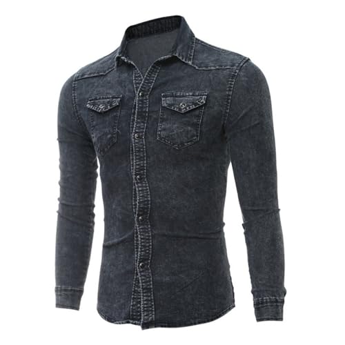 Men's Button Down Trucker Jean Shirt Casual Distressed Wash Denim Shirt Slim Fit Vintage Work Jean Jacket 6