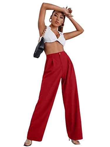 HOT ! SweatyRocks Women's Casual Wide Leg High Waisted Button Down Straight Long Trousers Pants