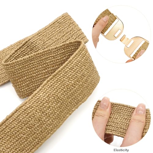 LIMHOO Women's Straw Woven Elastic Waist Belt Boho Braided Belt Wide Stretchy Waist Belt 5