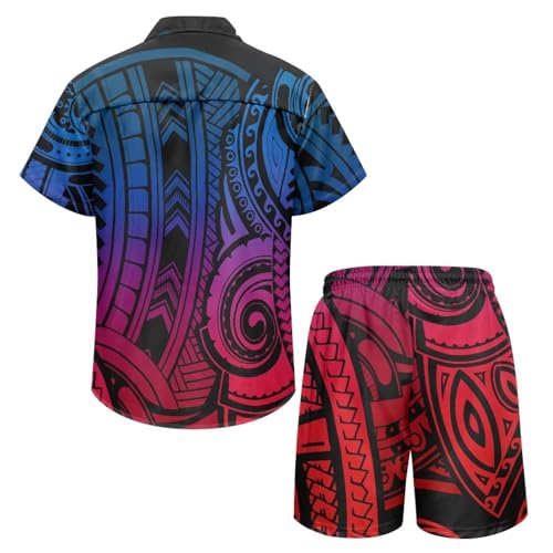 Puletasi Samoa Men's Hawaiian Matching Set Short Sleeve Shirt and Shorts Set Beach Tropical Vacation Outfits Sets 1