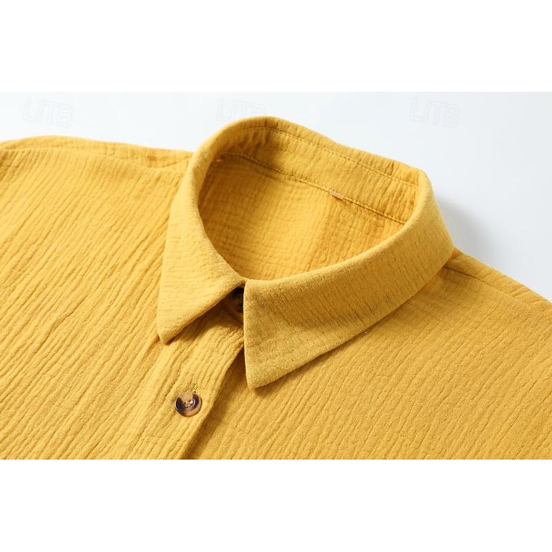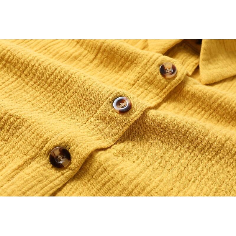 Highlights [Fabric] This women's shirt dress is crafted from lightweight polyester, making it an excellent choice for summer wear. The breathable fabric ensures comfort and coolness, even on the hottest of days. [Fit] Featuring a regular fit, this dress offers a relaxed and easy-going feel. Its mini dress length and V-neck design provide a casual yet stylish silhouette that complements a variety of body types. [Design Highlights] The dress showcases a classic button-down front with rustic wooden-style buttons, adding a touch of natural charm. The short sleeves can be rolled up for a laid-back look, and large front pockets enhance its practicality. [Occasions] Ideal for vacations and casual outings, this dress is perfect for those looking to maintain a chic yet relaxed appearance. Whether you're strolling along the beach or enjoying a casual dinner, its versatile style makes it a suitable choice for various summer activities. [Size Range] Available in sizes S through XXL, and in a range of colors including Blue, Green, White, Black, and Yellow, this dress accommodates various preferences and body dimensions, ensuring there's an option for everyone.