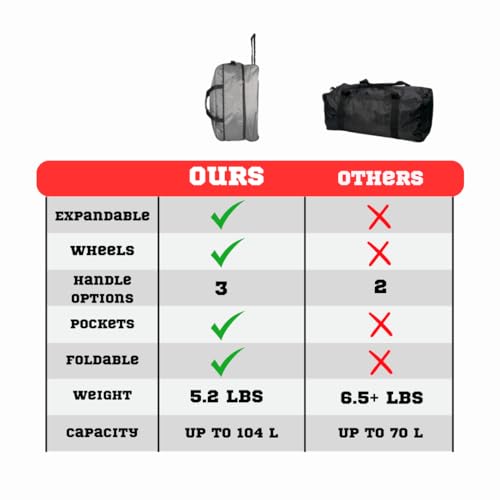 28" Travel Duffle Bag with Wheels, Expandable to 104L, Foldable, Multiple Handles, Study Overnight Bag Men Women Camping Suitcase (Gray) 4