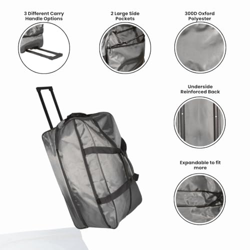 HOT ! 28" Travel Duffle Bag with Wheels, Expandable to 104L, Foldable, Multiple Handles, Study Overnight Bag Men Women Camping Suitcase (Gray)