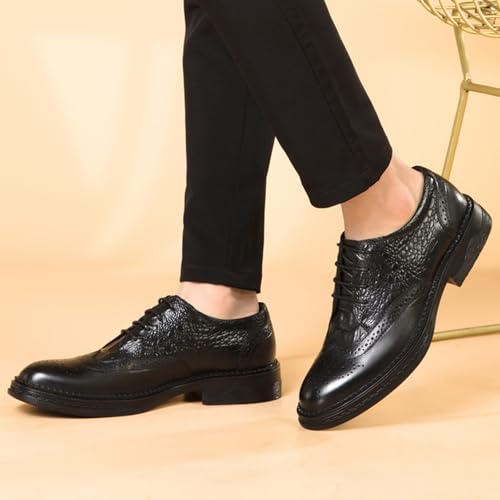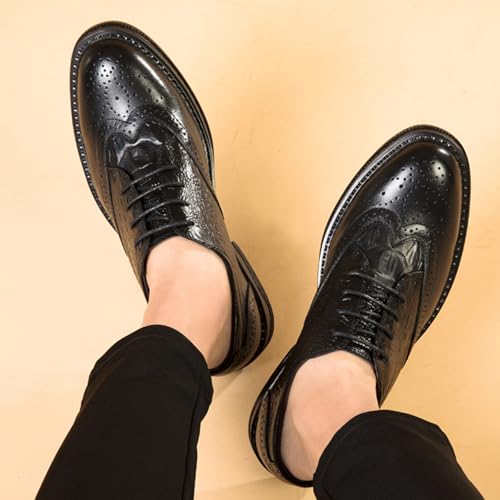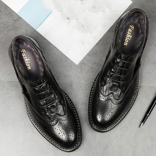 Men's Cowhide Leather Perforated Lace - up Oxfords Brogue Wingtip Shoes for Men 6