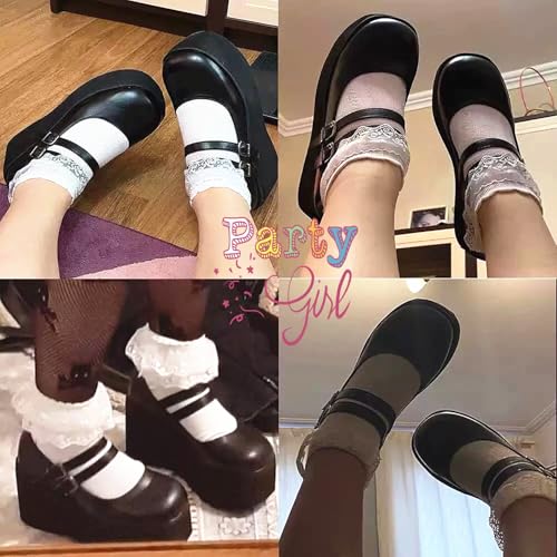 Gothniero Womens Black Platform Mary Janes Goth Lolita Chunky Heel Pumps Gothic Cute Dress Shoes for Women with Ankle Strap Size5.5-10 2