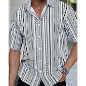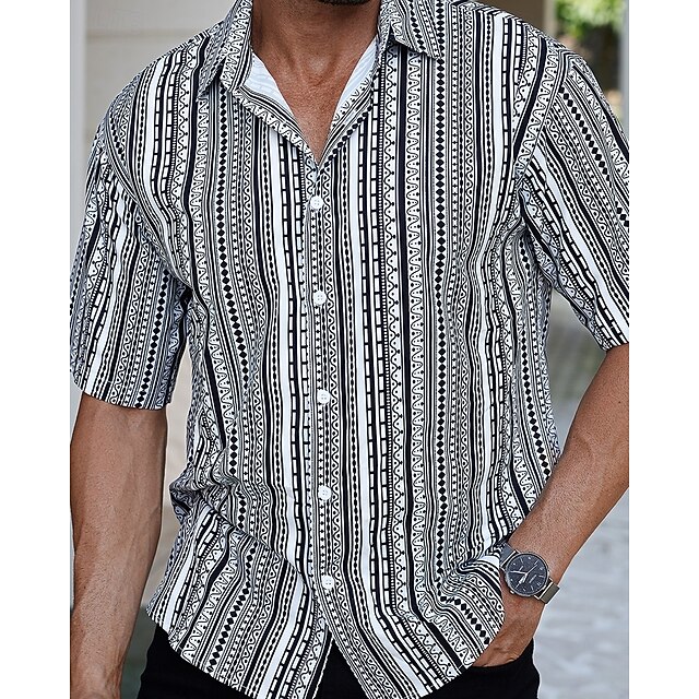 More information about Men's Shirt Summer Shirt Casual Shirt Beach Shirt Button Up Shirt Black Short Sleeve Stripes Shirt Collar Vacation Hawaiian Clothing Apparel Polyester Fashion Casual Comfortable