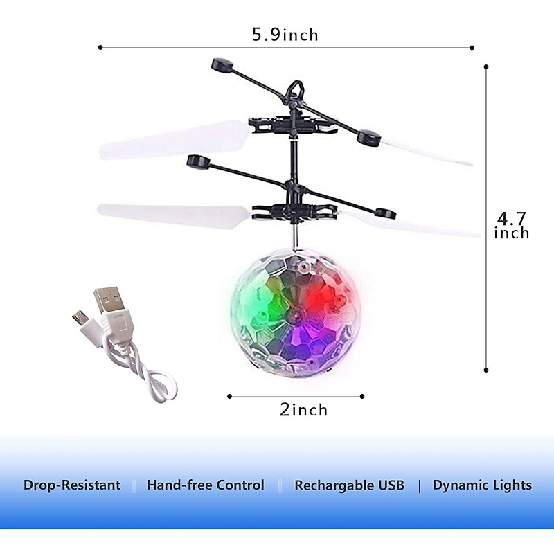 More information about Magic Flying Ball Toy - Infrared Induction RC Drone, Disco Light LEDs, Rechargeable Indoor Outdoor Helicopter - for Boys Girls Festive Teens Tweens & Adults