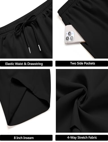 • Versatile Design --- Men's athletic shorts with solid colors design, 8 inch inseam, 2 side pockets to store all of your small essentials, and elastic waistband with adjustable drawstring for comfort fit.