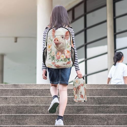 Kids Backpack Flower Pig Boys Girls School Backpack with Lunch Bag Bookbag Set for Elementary Middle School Teens 1