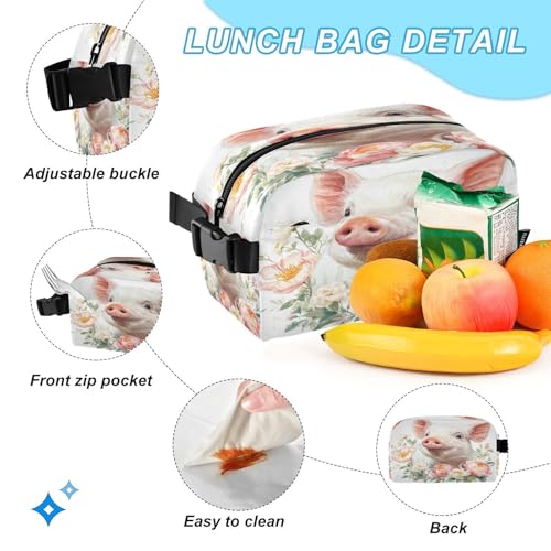 Kids Backpack Flower Pig Boys Girls School Backpack with Lunch Bag Bookbag Set for Elementary Middle School Teens 4