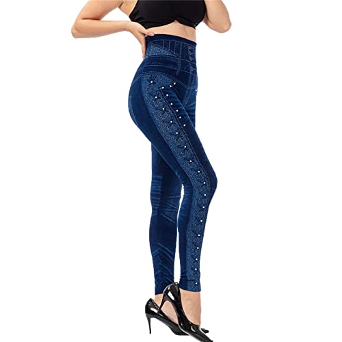 HOT ! Pull On Skinny Jeans for Women Rhinestone Stretchy High Waisted Denim Pants Slimtummy Control Leggings with Pockets