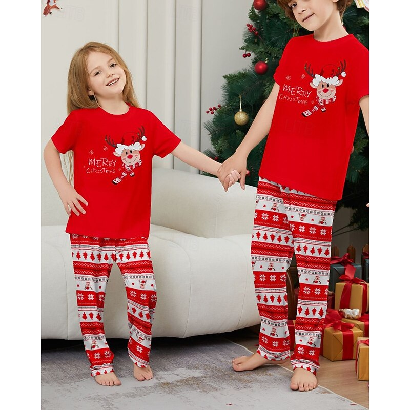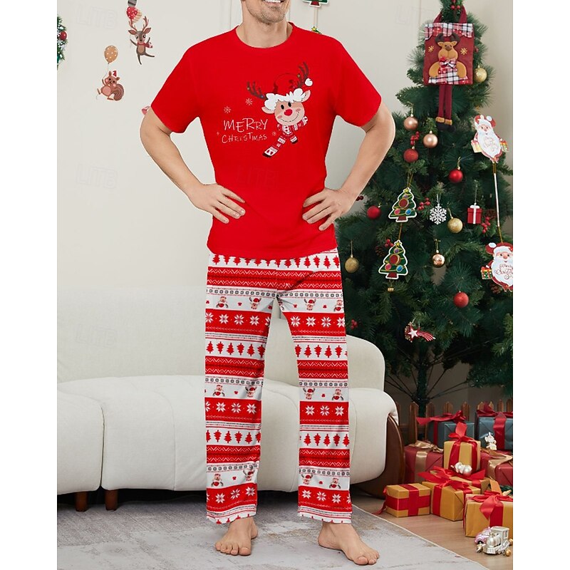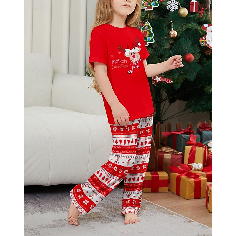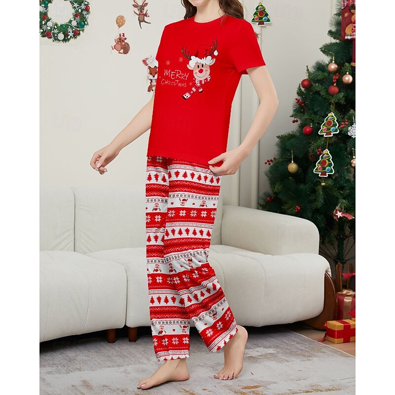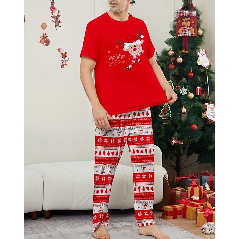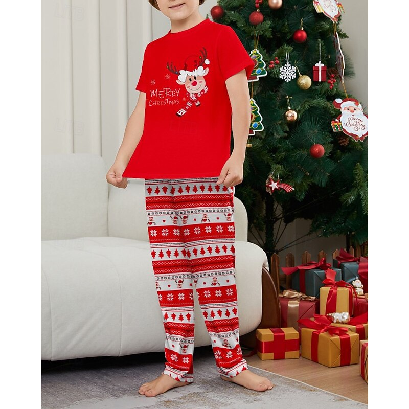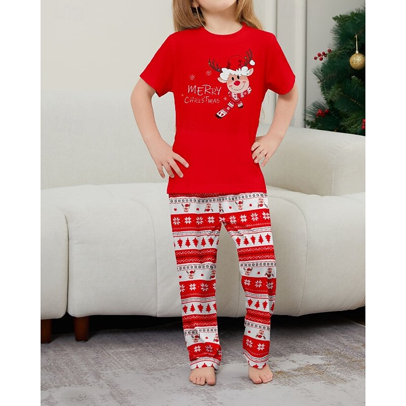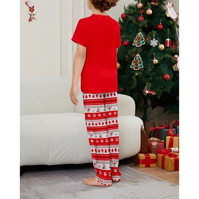 Family Pajamas Christmas Pattern Home Print Red Short Sleeve Active Matching Outfits 2