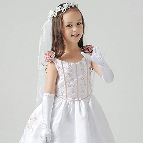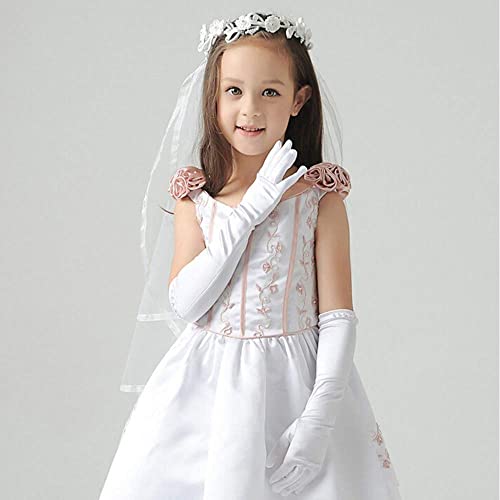 TINAYAUE Long Princess Costume Gloves for Little Girls Flower Girls Wedding Stretch Satin Gloves Party Fancy Dress Gloves 6