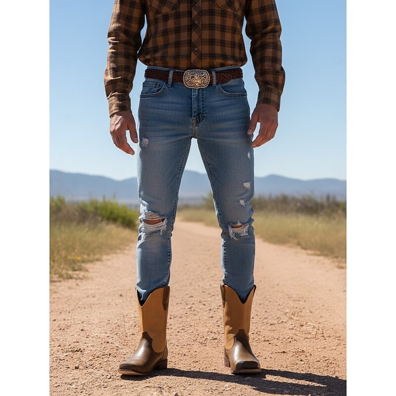 Men's Western Cowboy Boots – Vintage Style Tan Faux Leather Mid-Calf Boots with Square Toe, Ideal for Outdoor and Casual Wear 1