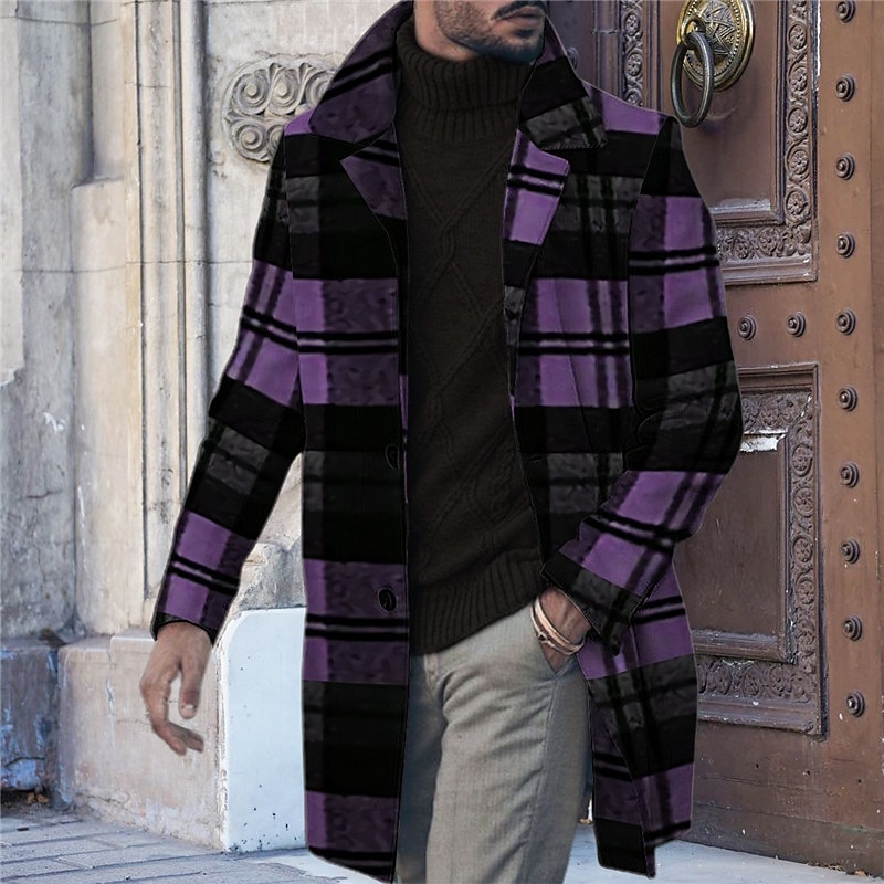 More information about Men's Plaid Graphic Prints Winter Coat Overcoat Coat Warm Comfortable Breathable Fashion Streetwear Business Work Wear to work Going out Pocket Print Fall & Winter Turndown Long Sleeve Yellow Blue