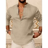 More information about Men's Shirt Linen Shirt Popover Shirt Summer Shirt Beach Wear Henley Shirt Solid Color Vacation Home Pink Sky Blue Green Khaki Long Sleeve Stand Collar Summer Spring Clothing Apparel Buttons