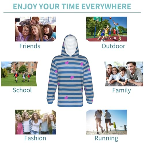 Blue White Striped Heart Boy, Girls Sports Shirt Youth Pullover Fashion Hooded Sweatshirt 4