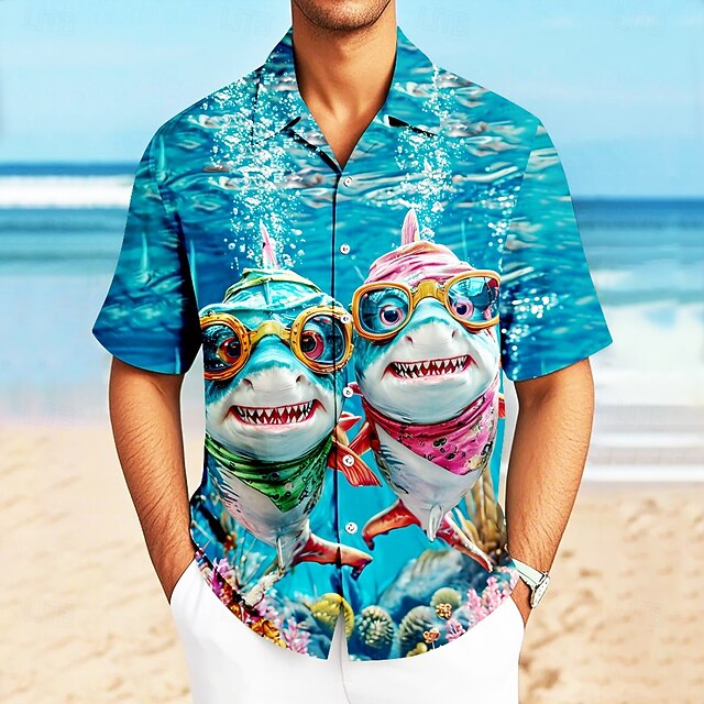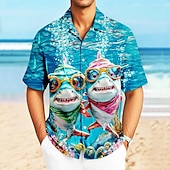 popular ! Men's Shark Ocean Sea Creatures Shirt Cuban Collar Shirt Summer Hawaiian Shirt Short Sleeve Hawaiian Vacation Holiday Beach Wear Summer Spring Camp Collar Shirt 3D Print Blue