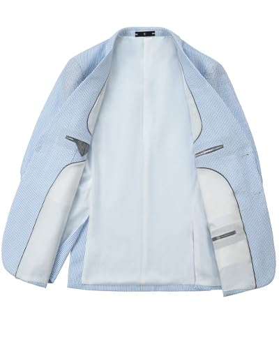 More information about Seersucker Blazer Men Big and Tall Slim Fit Suit Jackets for Men Tuxedo Separate Sport Coat Formal Summer Beach Wedding Sky Blue Outfit Plus Size 3XL