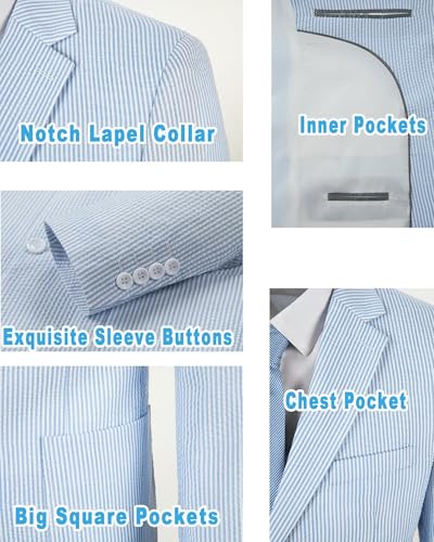 • Classic Design: Seersucker suit jackets for men with 1 chest pockets, two big square pockets, exquisite sleeve button, slim fit design can show men’s body proportion better, stylish appearance never go out of style.