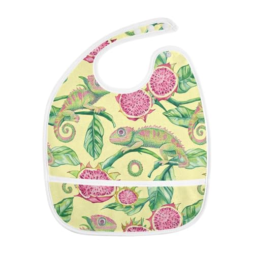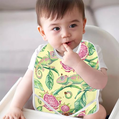 MCHIVER Chameleon Dragonfruits Baby Bibs for tag1 Waterproof Feeding Bib Apron with Food Cather Adjustable Cotton Food Eating Bib 2 Pack 6