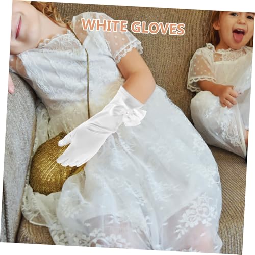 NOLITOY 1Pair Satin Princess Gloves for Elegant Long Lace Gloves with Bow for Flower for Tea Parties Weddings and Special Occasions Soft Comfortable and Stylish 1