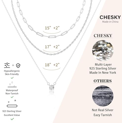 More information about CHESKY Layered Silver Necklaces for Women Trendy,Streling Silver Dainty Stackable Charm Necklace for Womens Layering Paperclip Tennis Rope Chain Diamond Pendant Necklaces Jewelry Set for Women Gifts