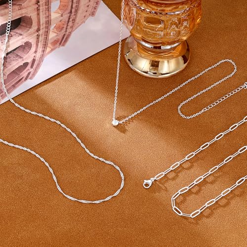 CHESKY Layered Silver Necklaces for Women Trendy,Streling Silver Dainty Stackable Charm Necklace for Womens Layering Paperclip Tennis Rope Chain Diamond Pendant Necklaces Jewelry Set for Women Gifts 4