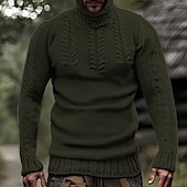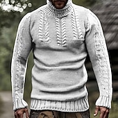 More information about Men's Pullover Sweater Jumper Knit Sweater Ribbed Knit Regular Tops Knitted Plain Turtleneck Fashion Basic Vacation Daily Wear Clothing Apparel Fall Winter Black White S M L