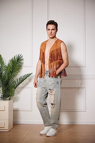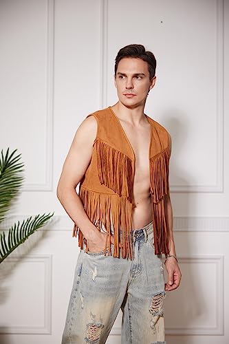 • Features: open front, sleeveless, fringe hem vest jacket, cowboy vest, mens fringe jacket black