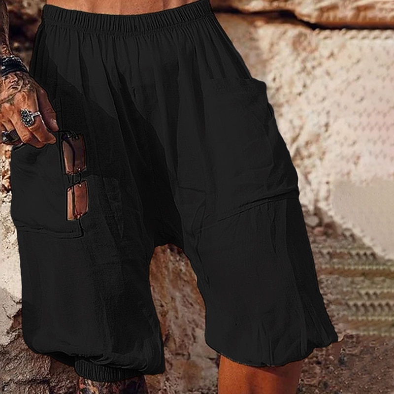 More information about Men's Shorts Linen Shorts Summer Shorts Bloomers Pocket Elastic Waist Baggy Plain Comfort Breathable Short Casual Daily Holiday Fashion Classic Style Black White