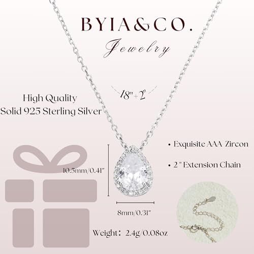 S925 Sterling Silver 14K Gold Necklace for Women Teardrop Cubic Zirconia Dainty Necklace Imitation Diamond Pear Cut CZ Pendant Necklaces for Women 18+2 Inch Jewelry Gift for Her 7