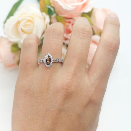 OMRANII Art Deco Marquise Natural Chocolate Smoky Quartz Halo Cubic Zirconia Filigree Band Classic Style Wedding Engagement Ring Solid 925 Sterling Silver Gift For Women 6