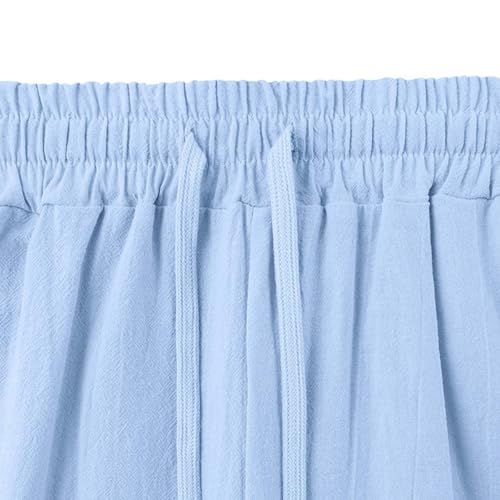 Mens Cotton Linen Pants Drawstring Waist Straight Leg Baggy Beach Pants Lightweight Breathable Vacation Trousers 6
