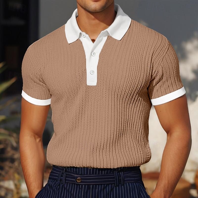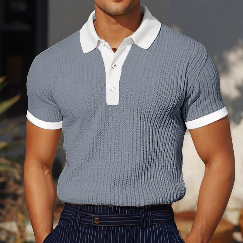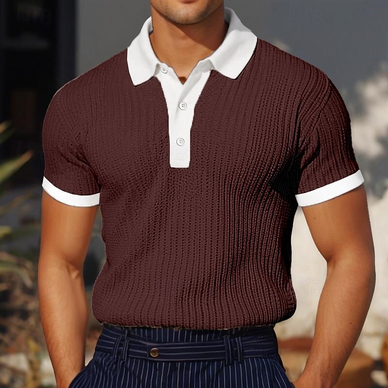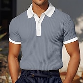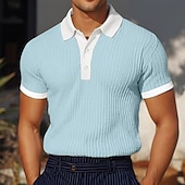 More information about Men's Golf Shirt Knit Polo Business Casual Classic Short Sleeve Vacation Fashion Color Block Buttons Knitted Summer Spring Regular Fit White Burgundy Blue Khaki Gray Golf Shirt