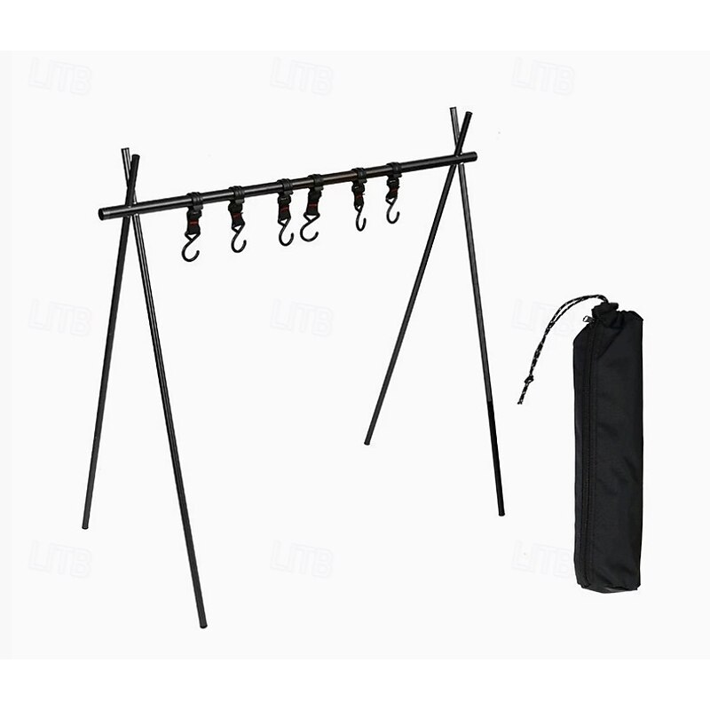 HOT ! Foldable Tripod Camping Hanging Rack - 4 Hooks Outdoor Cookware Storage Portable, Outdoor Camping Folding Rack