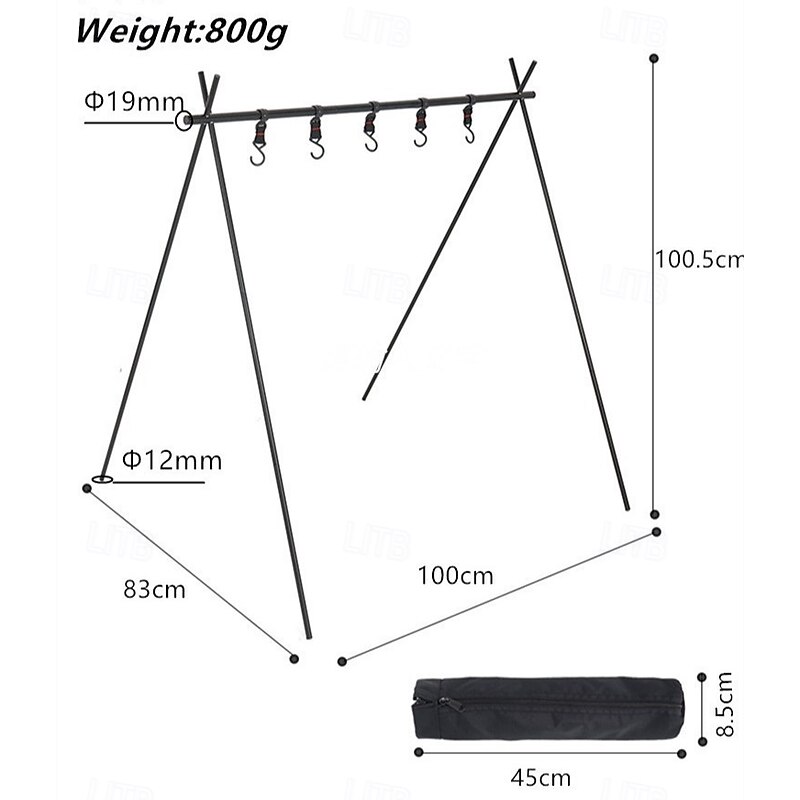 Foldable Tripod Camping Hanging Rack - 4 Hooks Outdoor Cookware Storage Portable, Outdoor Camping Folding Rack 17