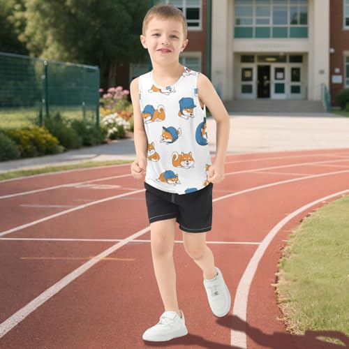 J JOYSAY Cartoon Shiba Dog White Boys Tank Top Sleeveless Muscle Shirts Quick Dry Sport Active Workout Kids T-Shirts 3-15T 3