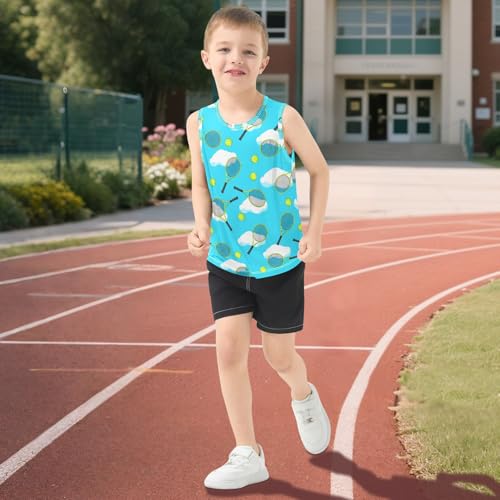 Tennis Racket Ball Clouds Boys Tank Tops Toddler Tank Top Shirts Undershirts Quik Dry for 3-15 Years,3T 4