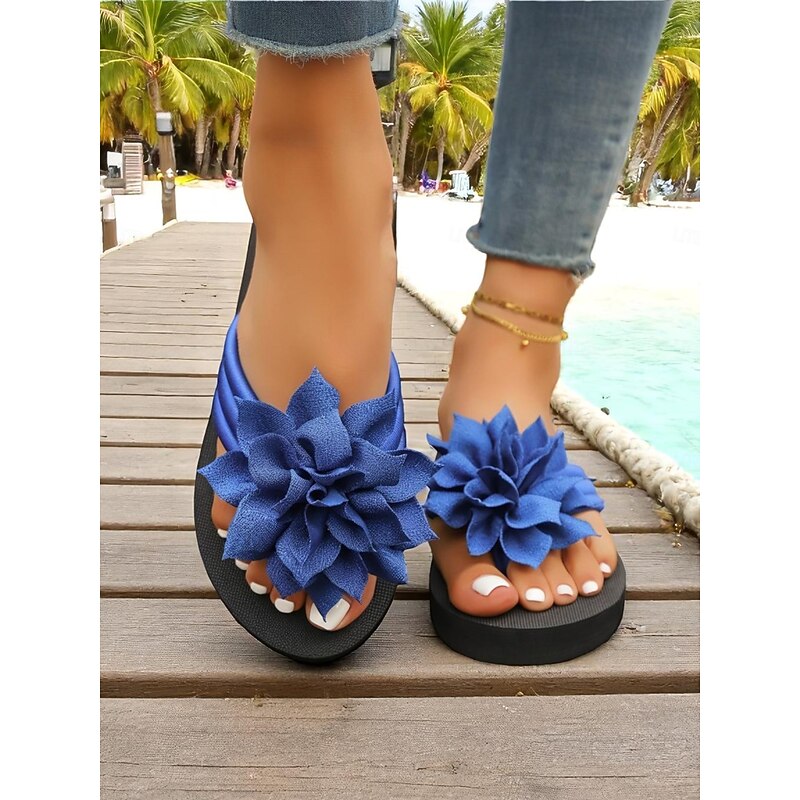 Women's Beige Flower Flip Flops with Cushioned Sole  Casual Beach Sandals for Summer Vacations and Poolside Relaxation 24