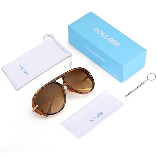 • HIGH-QUALITY MATERIAL: Dollger oversized retro aviator sunglasses are made of high-quality PC material frames. comfortable, and durable. Best-in-class sunglasses hinges and integrated nose pads reduce pressure on the nose. All the quality details will ensure you have a perfect wearing experience.