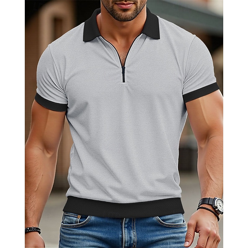 $14.49 - Men's Polo Shirts Quarter Zip Polo Daily Wear Date Quarter Zip Short Sleeve Fashion Basic Color Block Patchwork Zipper Summer Regular Fit Black White Royal Blue Khaki Gray Polo Shirts 2025. Shop for cheap Men's Classic Polo online? Buy at lightinthebox.com on sale today!